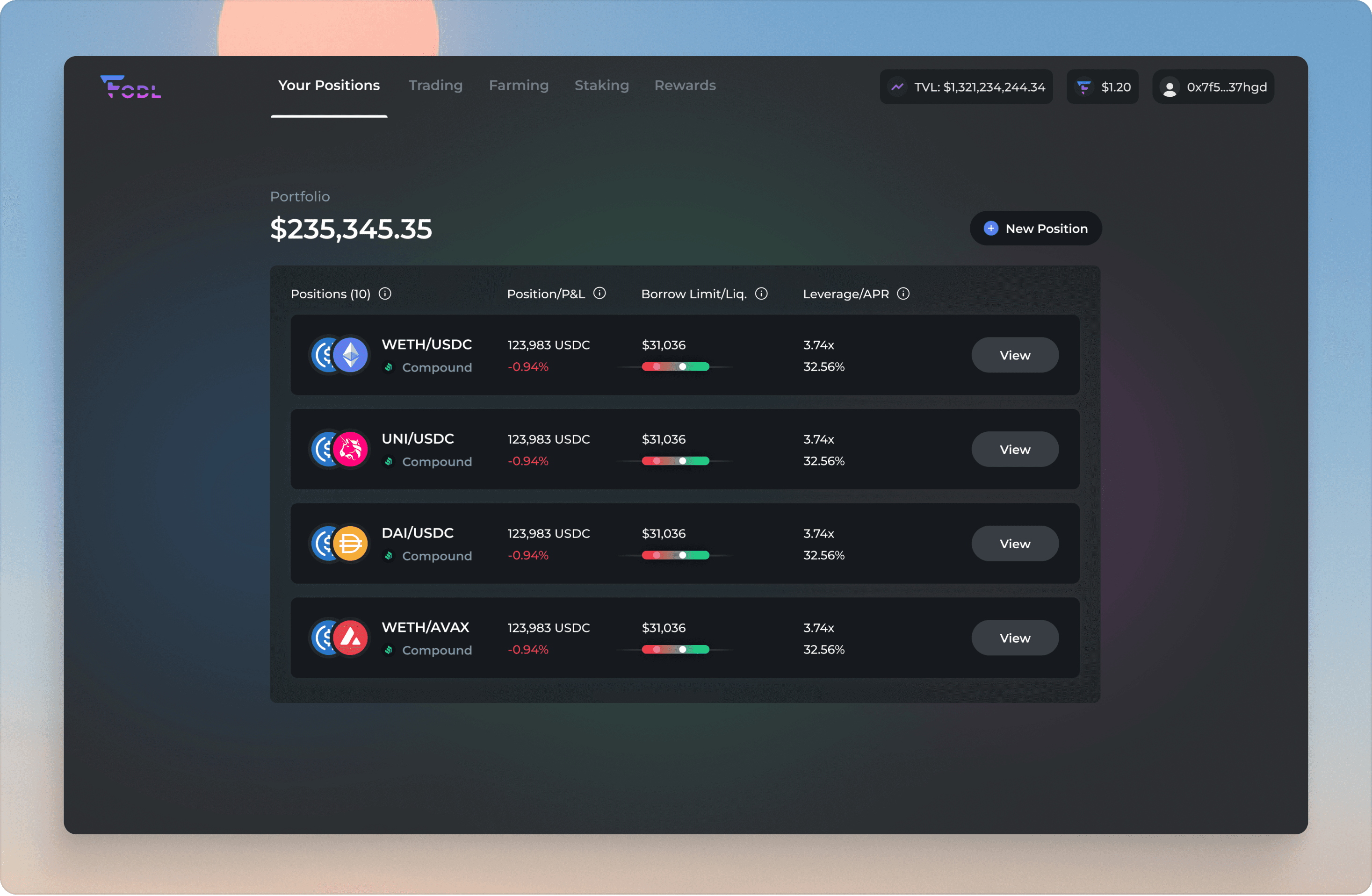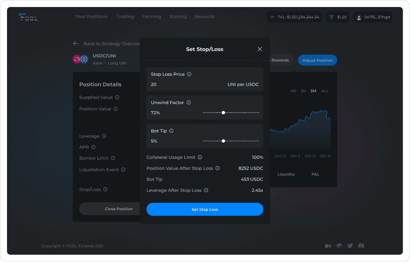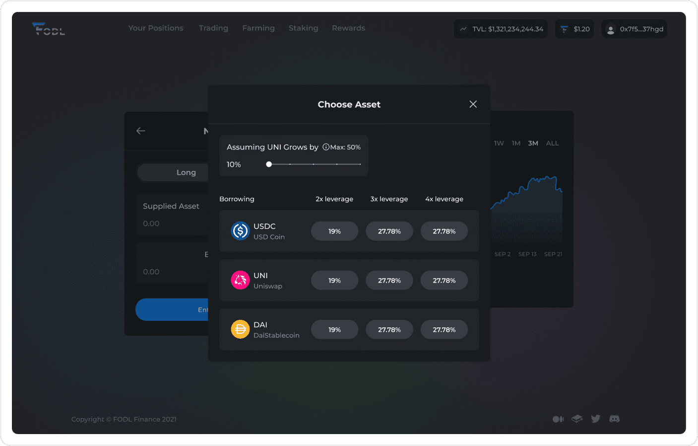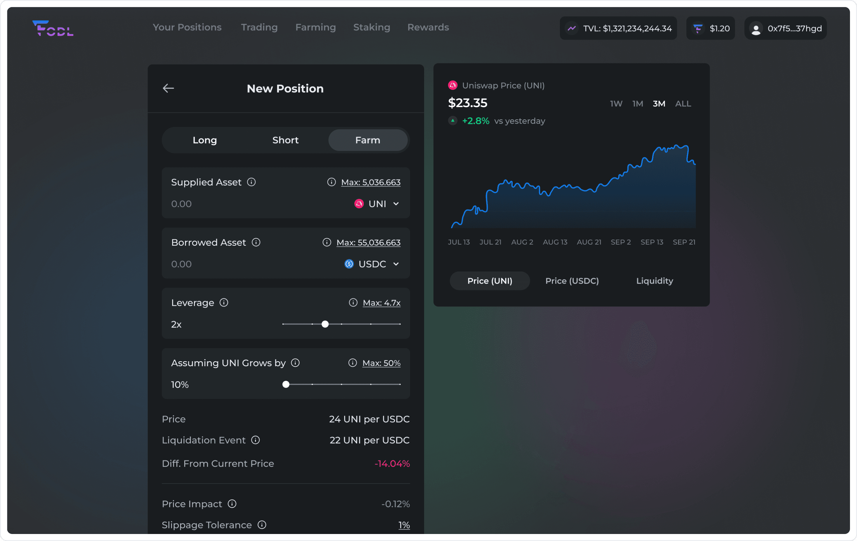 FODL is a platform that allows users to take leveraged long or short positions on DeFi assets, without liquidation risk, through a decentralized stop-loss mechanism. Our mission was to understand what the current pain points that users have are, and redesign the platform so that there is absolutely no confusion throughout the flows.