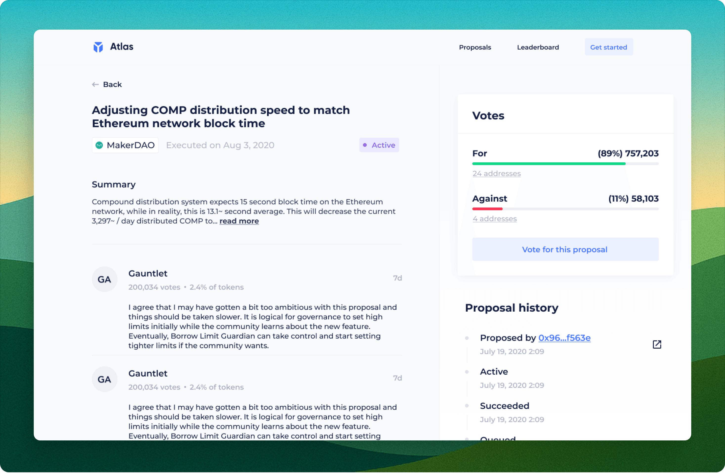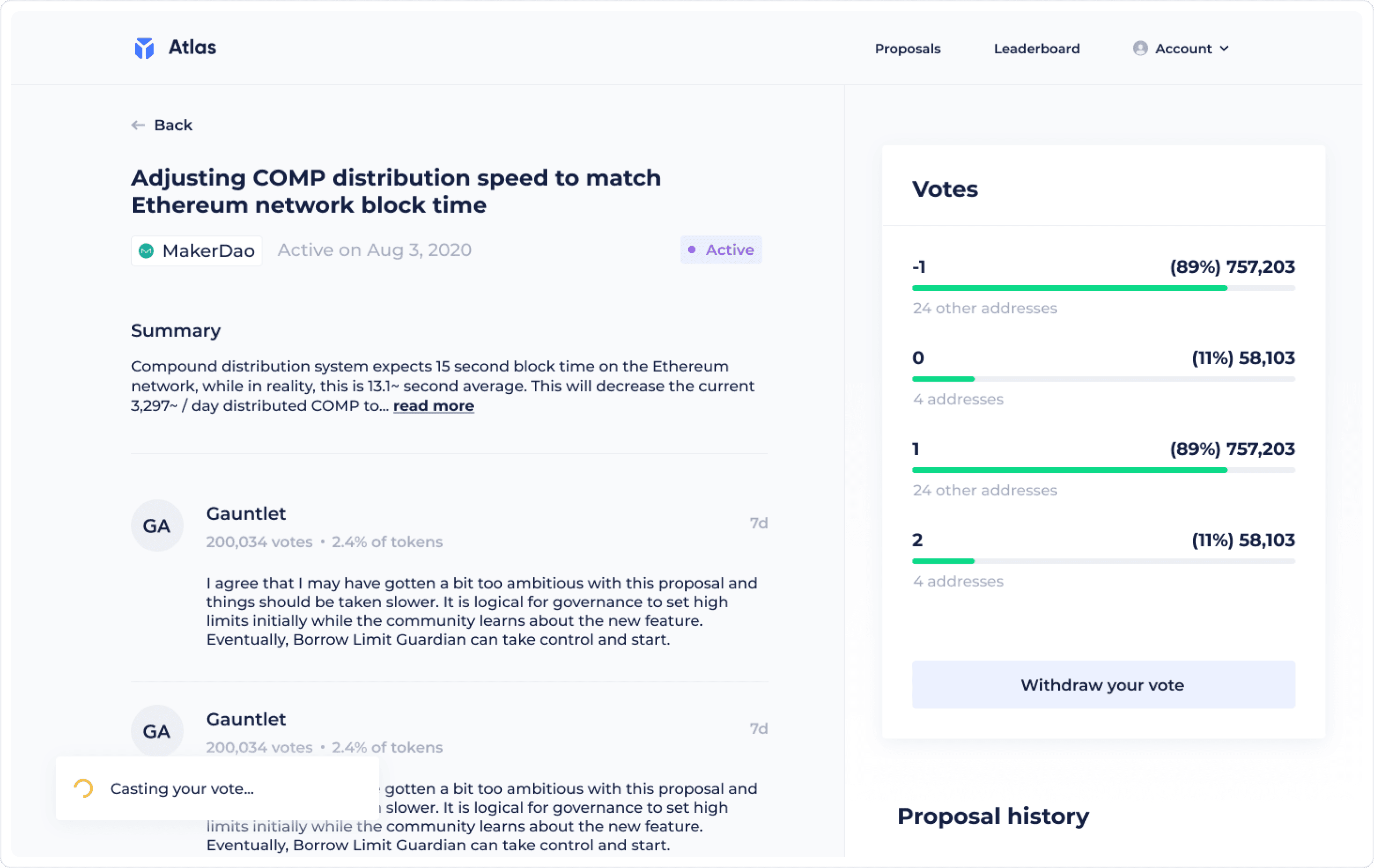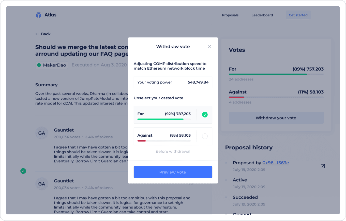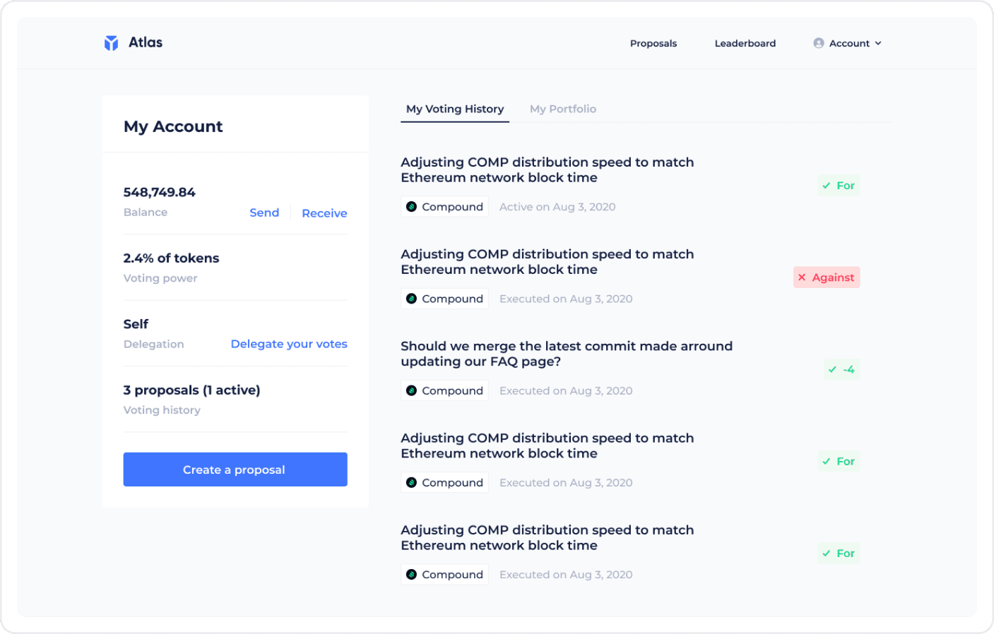 Atlas is a platform where DAOs can effortlessly create, configure, and manage their decentralized organizations. Our aim was to design an intuitive interface that simplifies governance processes, enabling DAO members to eaasily vote, propose, and track their decisions.