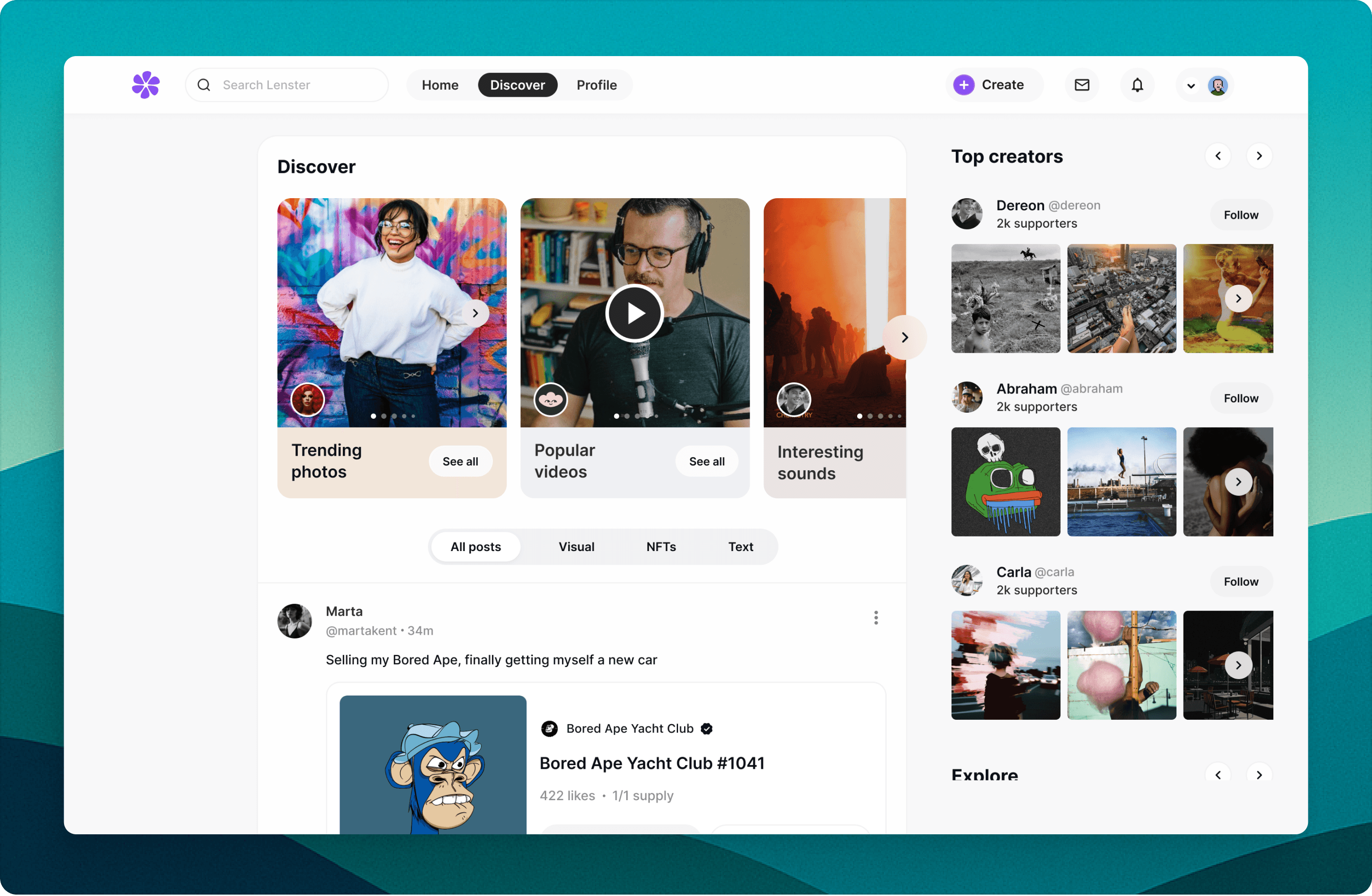 Lenster is a web3-based social media platform that at its peak had over 130K DAU. Our mission was to understand why users were thrilled to come back to the platform, redesign the UX based on those findings, and create a new and refreshed design.