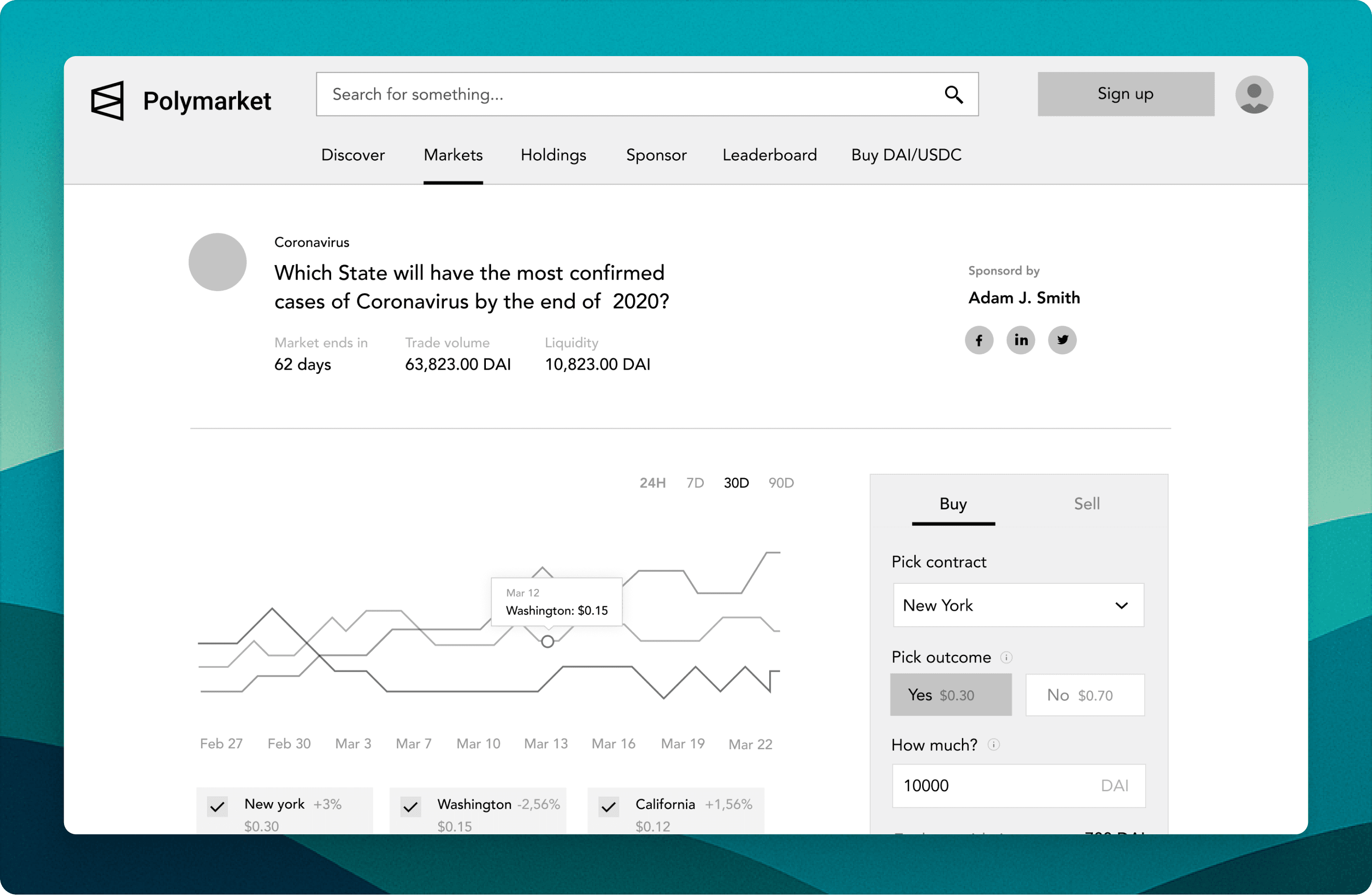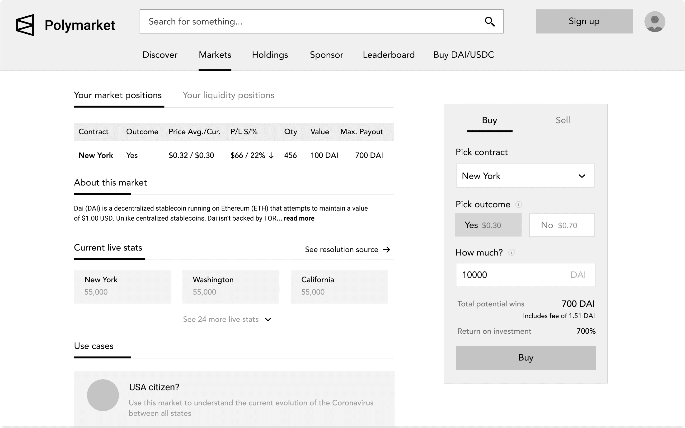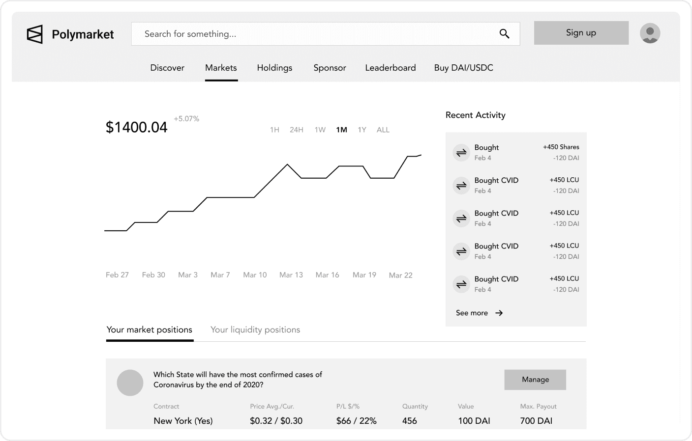 Our mission was to understand how users are currently interacting with prediction markets and come up with a design that would solve their needs and differentiate itself from what was out there at the time.