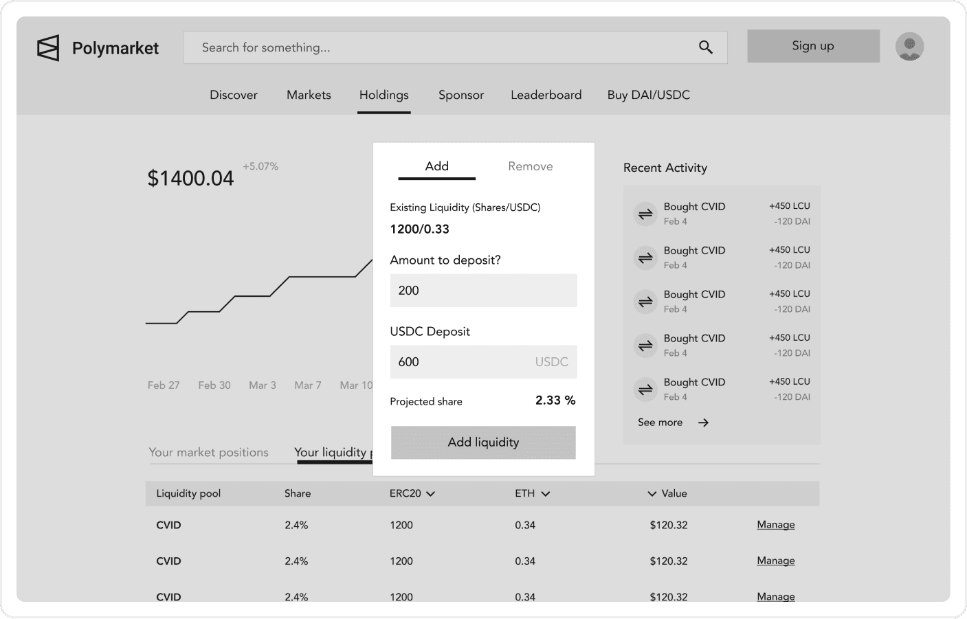 Created a feature that would add/remove liquidity for a market.