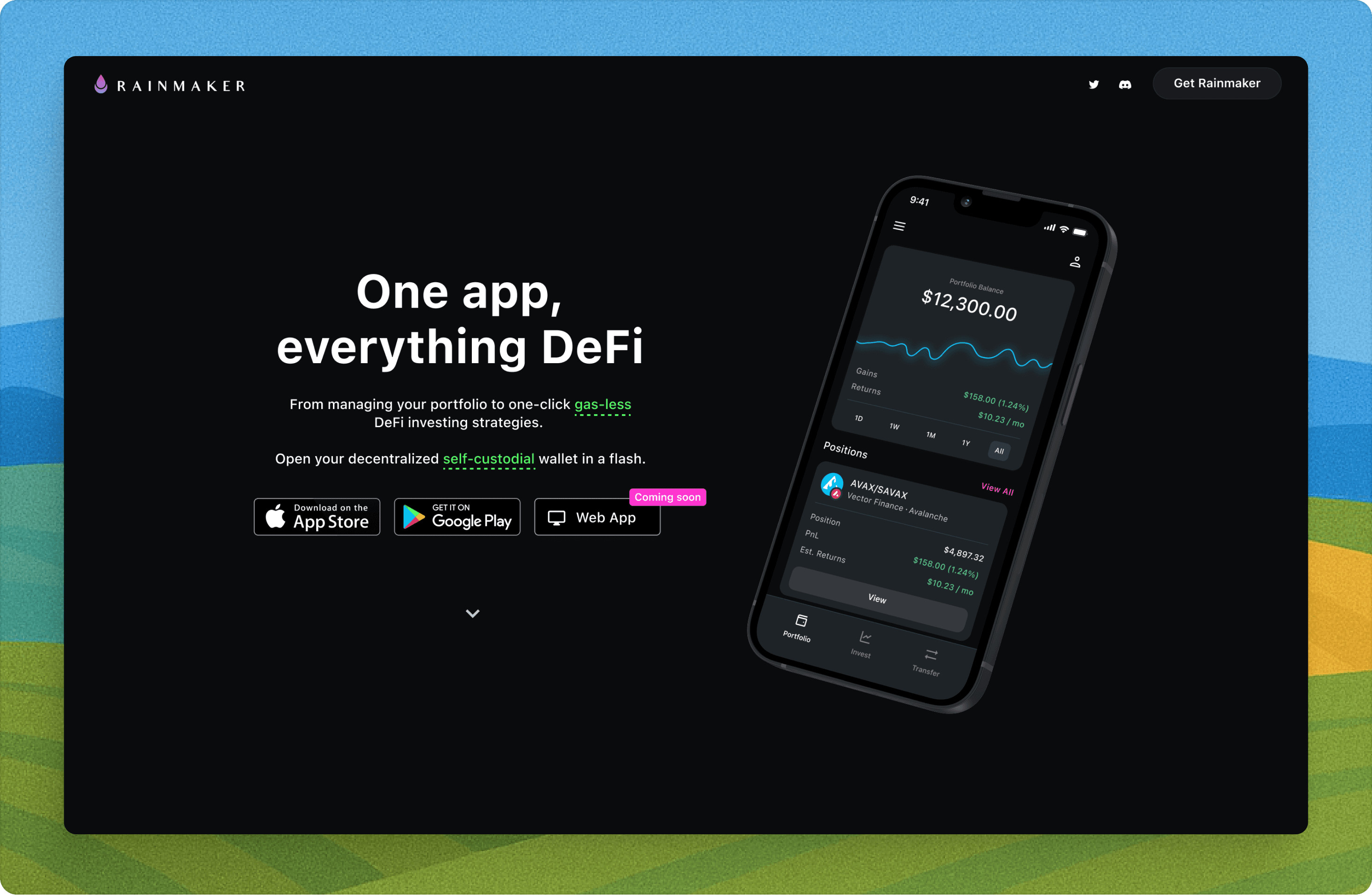 When Carlos and Brent joined as partners, they already had a fully working MVP of Rainmaker, a wallet that uses the power of account abstraction in order to create one-tap, gas-less transactions on some of the best EVM opportunities. They knew they were great programmers but they needed someone with a strong web3 design background in order to guide them forward.