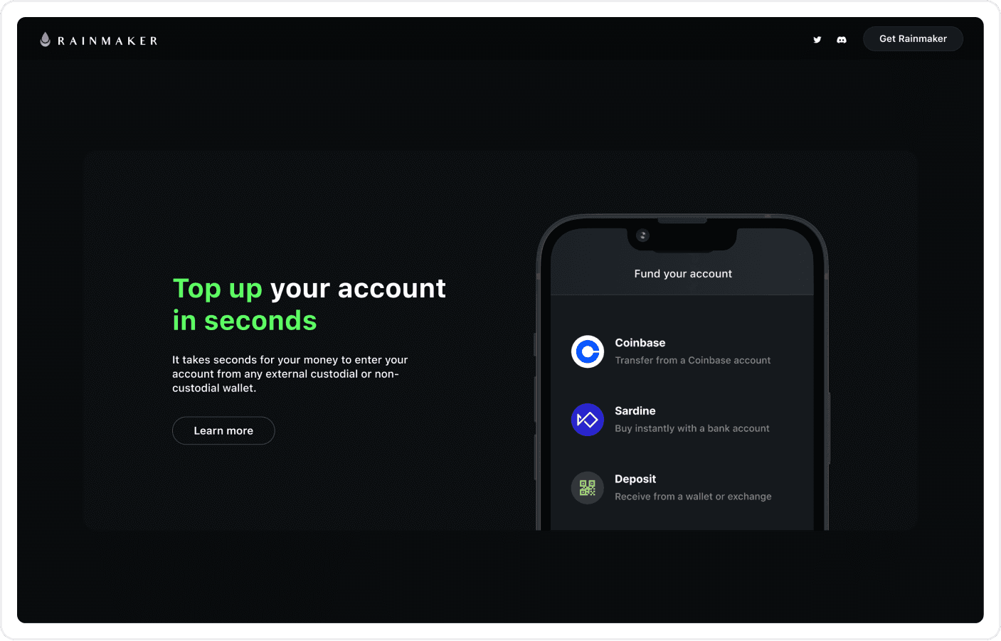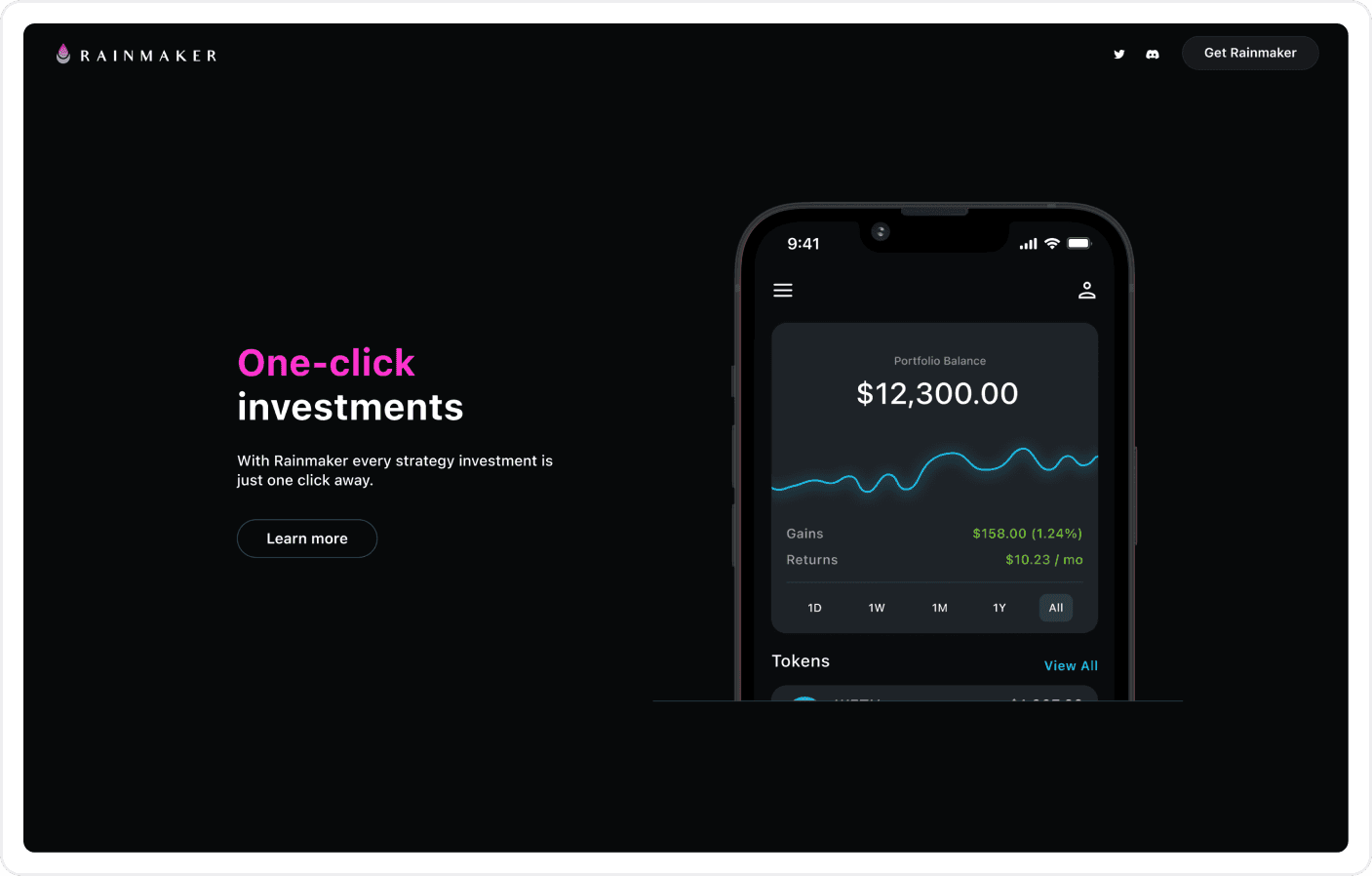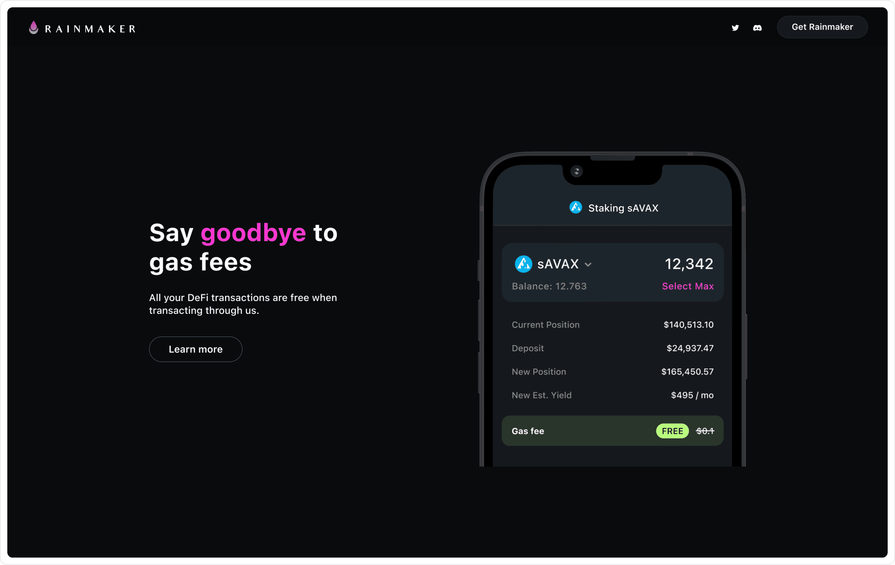In a 1-week sprint, our team tackled user needs and prototyped a refreshed Rainmaker landing page focused on simplifying DeFi trading. We iterated based on feedback, adding in every main feature and letting users dig deeper with a learn more button. The final MVP, delivered to Rainmaker, increased user flow towards the main app and answered all questions users had.