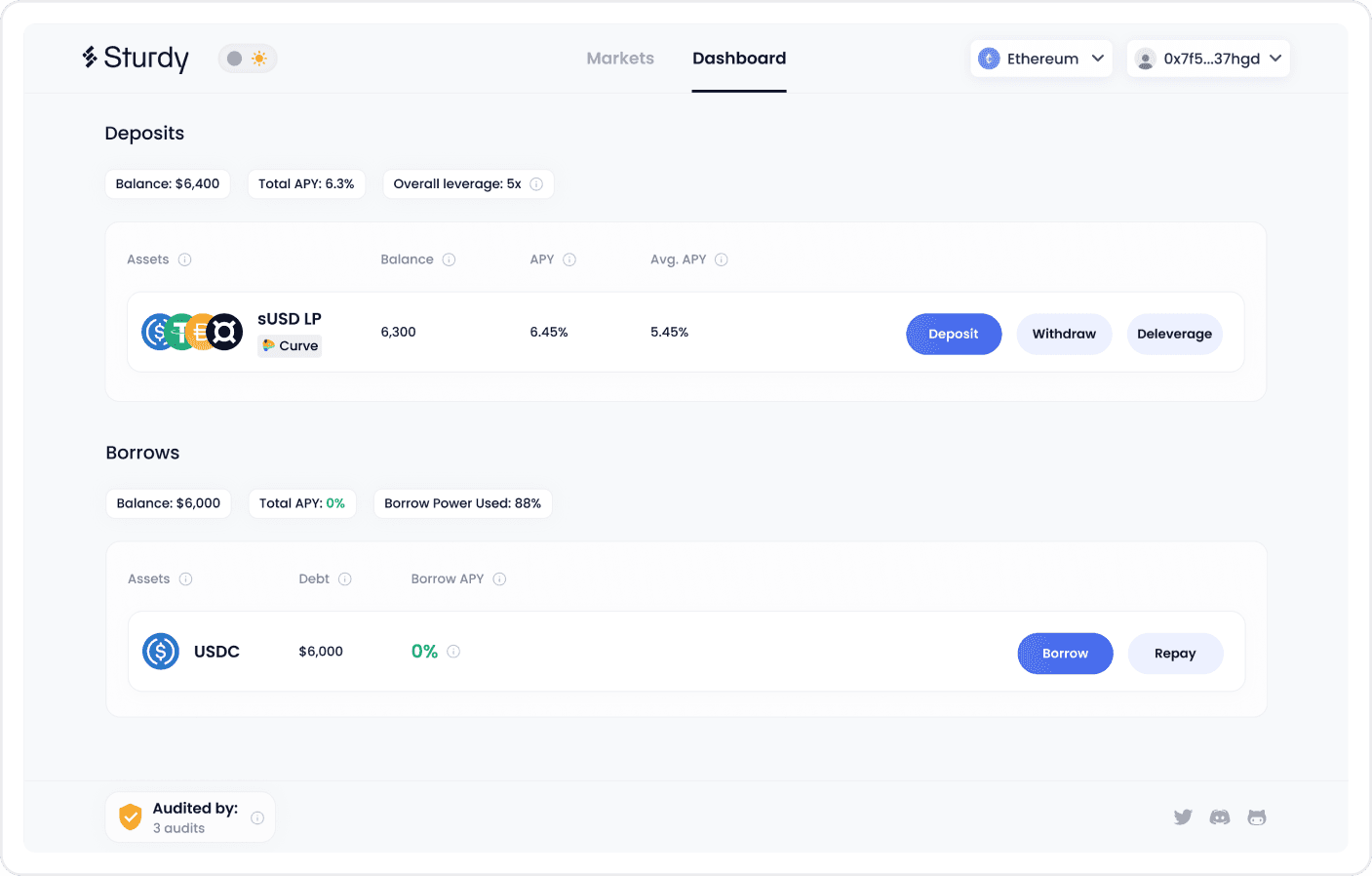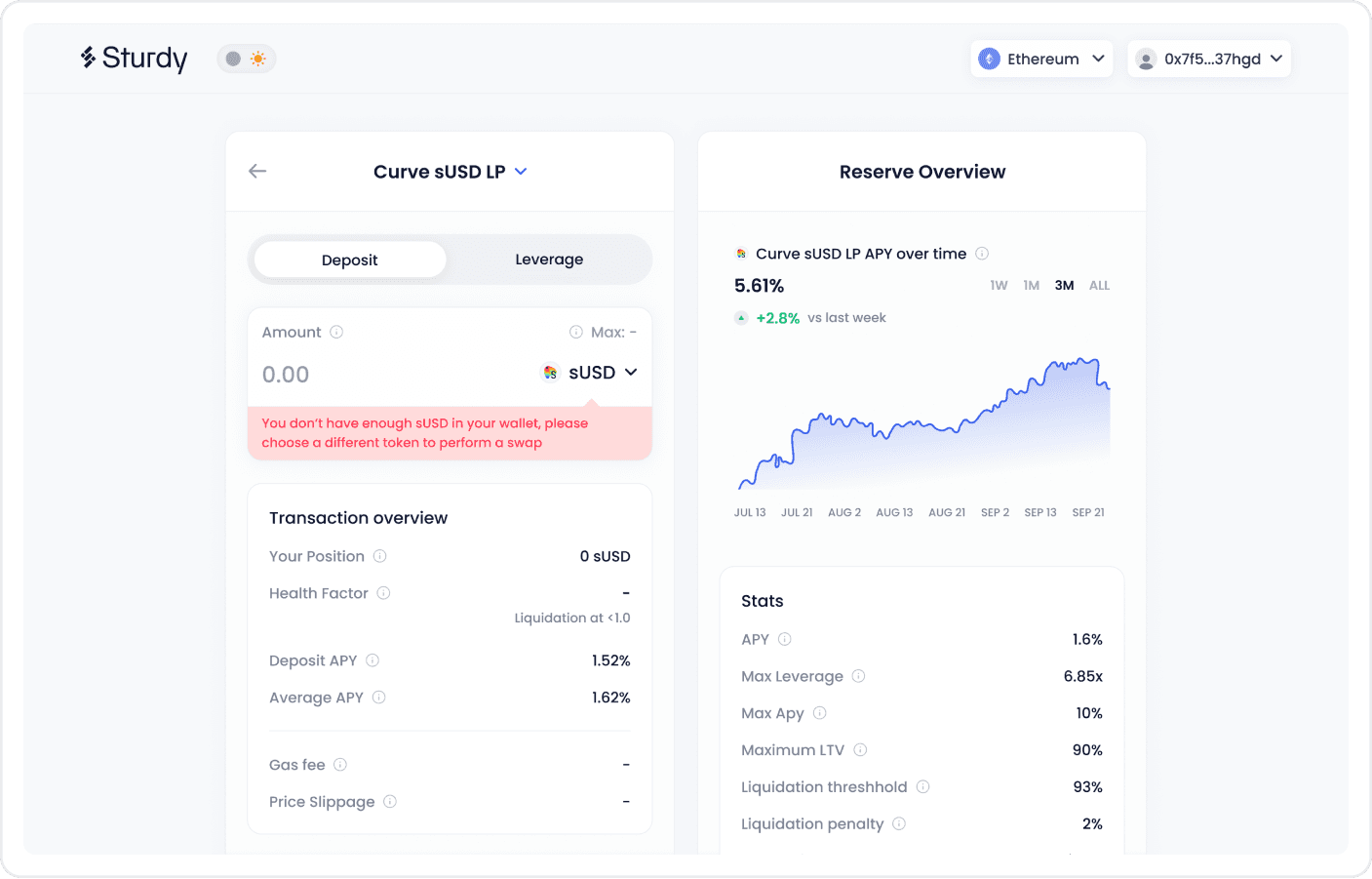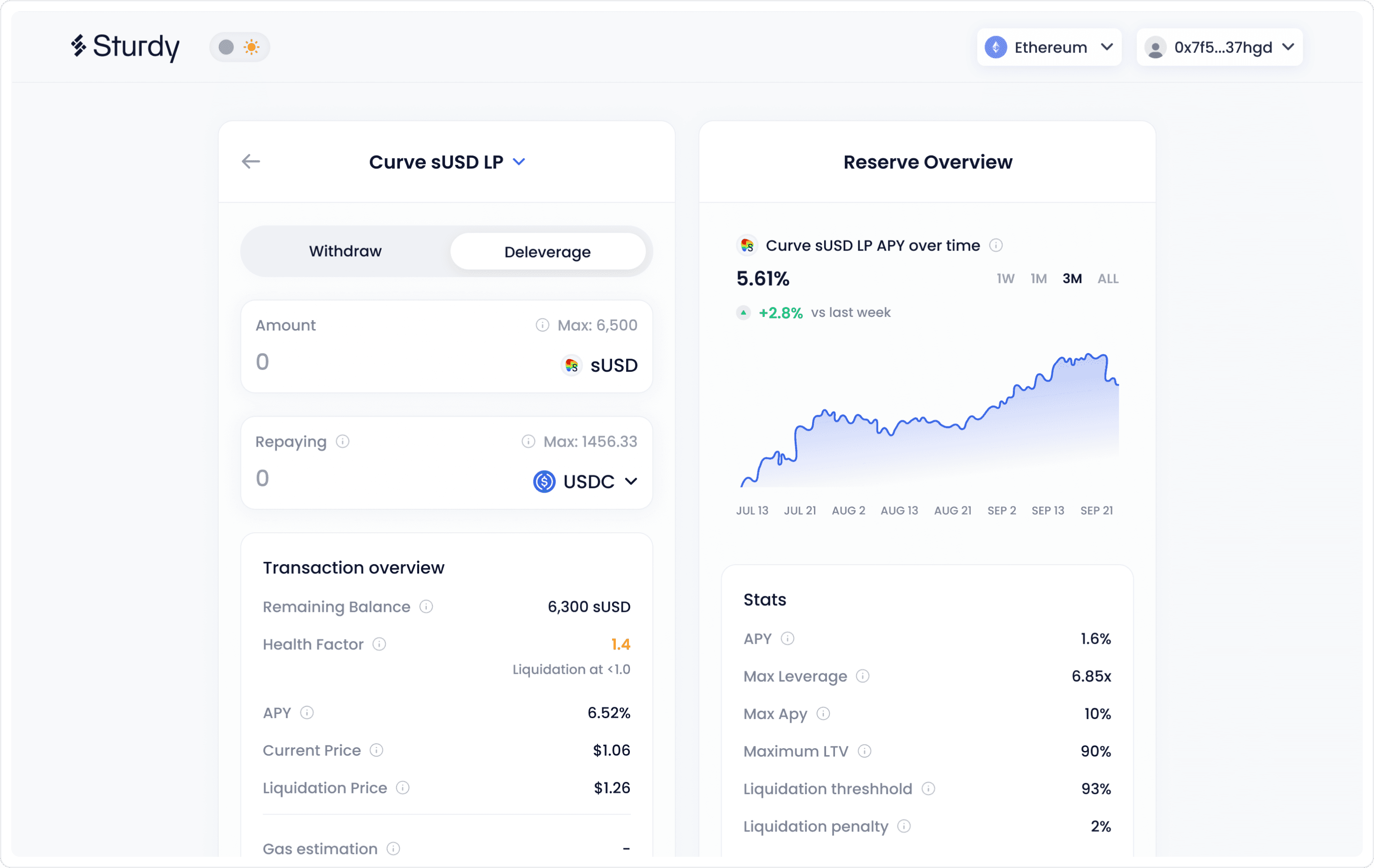 Sturdy is a DeFi protocol that introduces a different style of lending and borrowing, one that allows people to borrow at just 0% yield. Our mission was to understand what the current pain points that users are facing are, while at the same time come up with a new design that not only solves those pain points but delights the user.