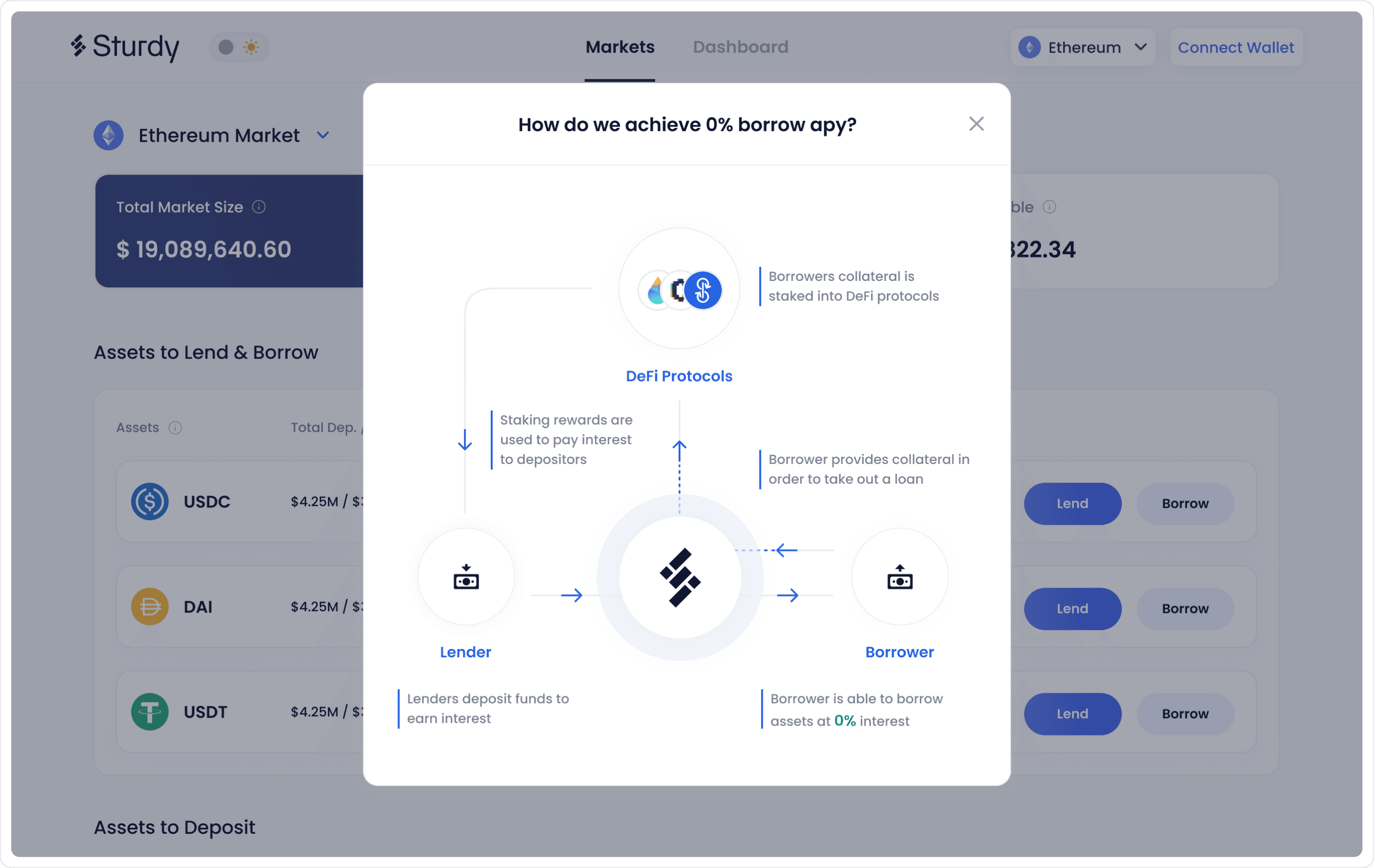 Created a tooltip that explains how Sturdy is able to achieve 0% borrow APY.