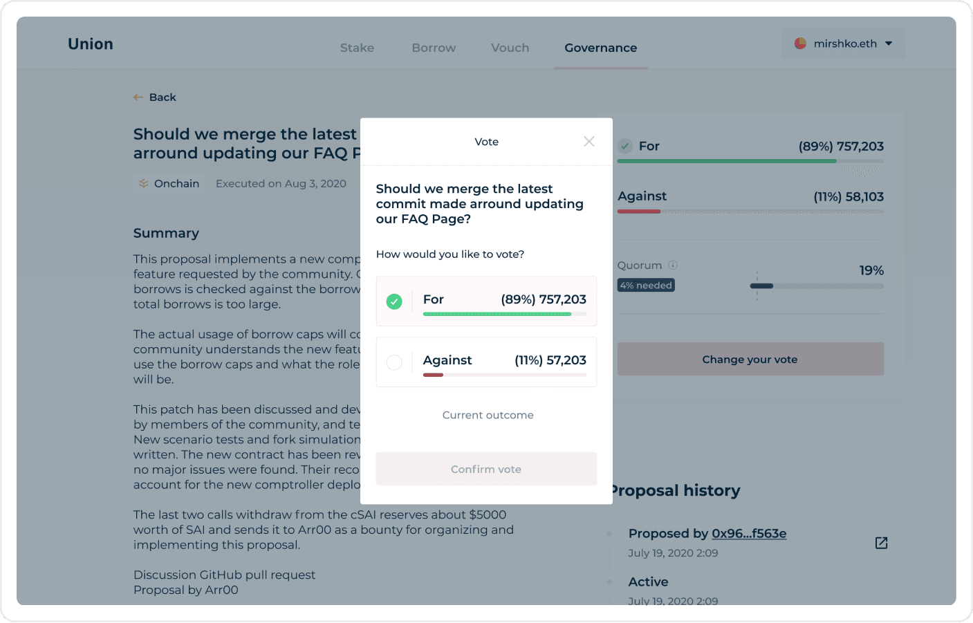 The main challenge was designing a governance interface that was accessible to all users, despite the complexity of onchain voting. We needed to balance familiarity with traditional voting systems while avoiding the confusion that web3 offered to less experienced users.