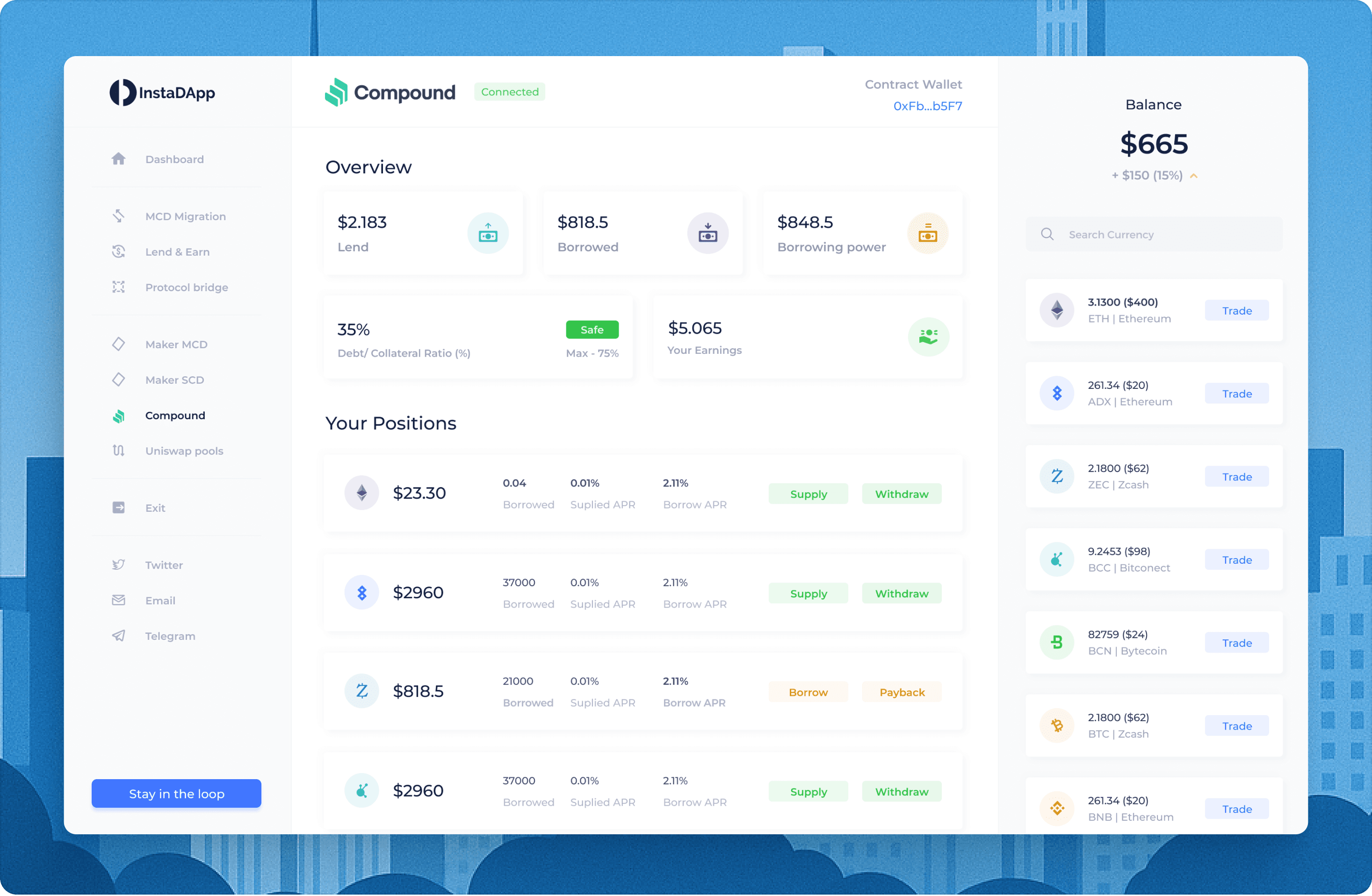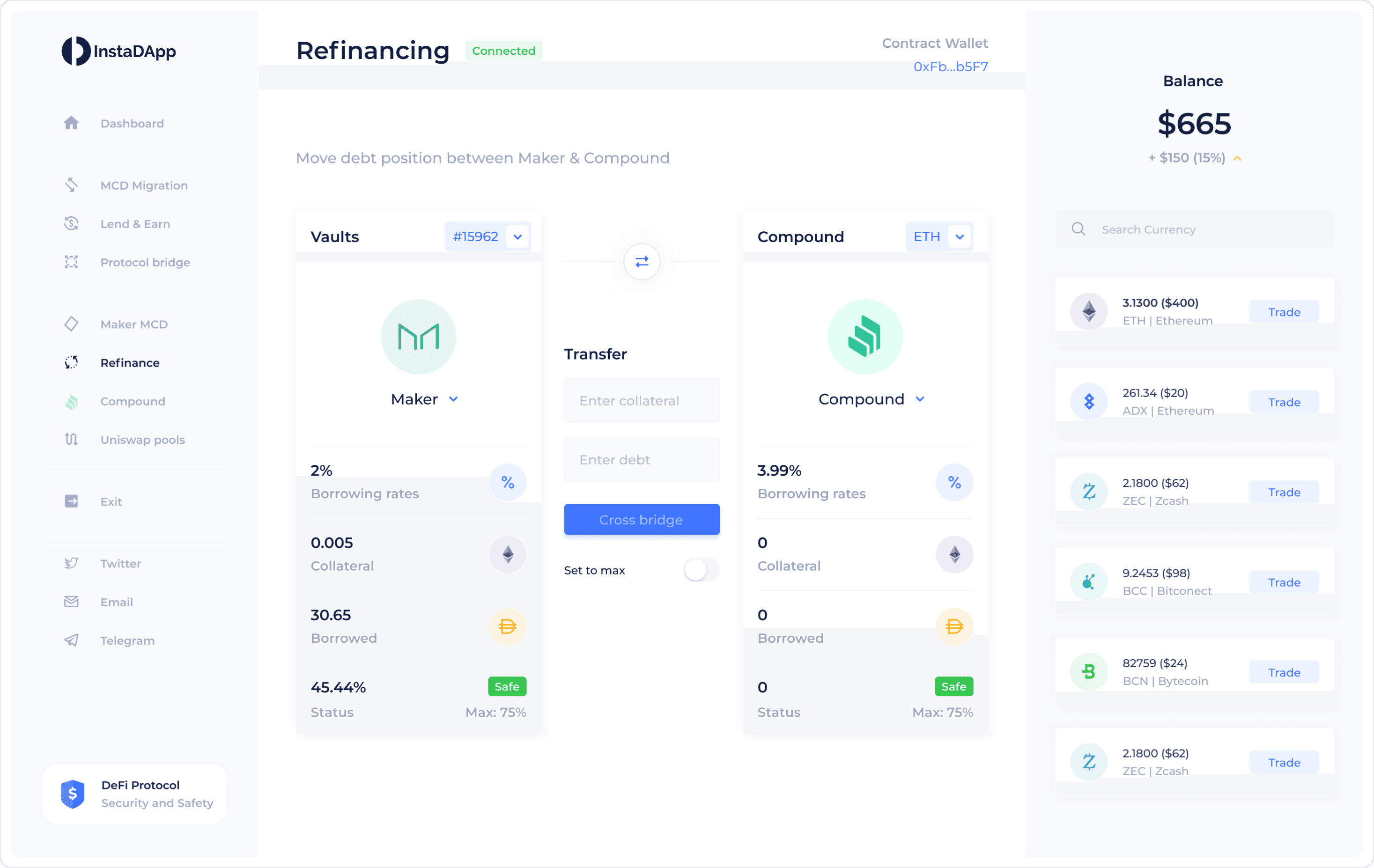 After a few calls with the InstaDapp team, we understood that the project had to be done in parts. We started with the main dashboard and slowly continued with the other features of the dapp: refinancing, strategy maker, and many others.